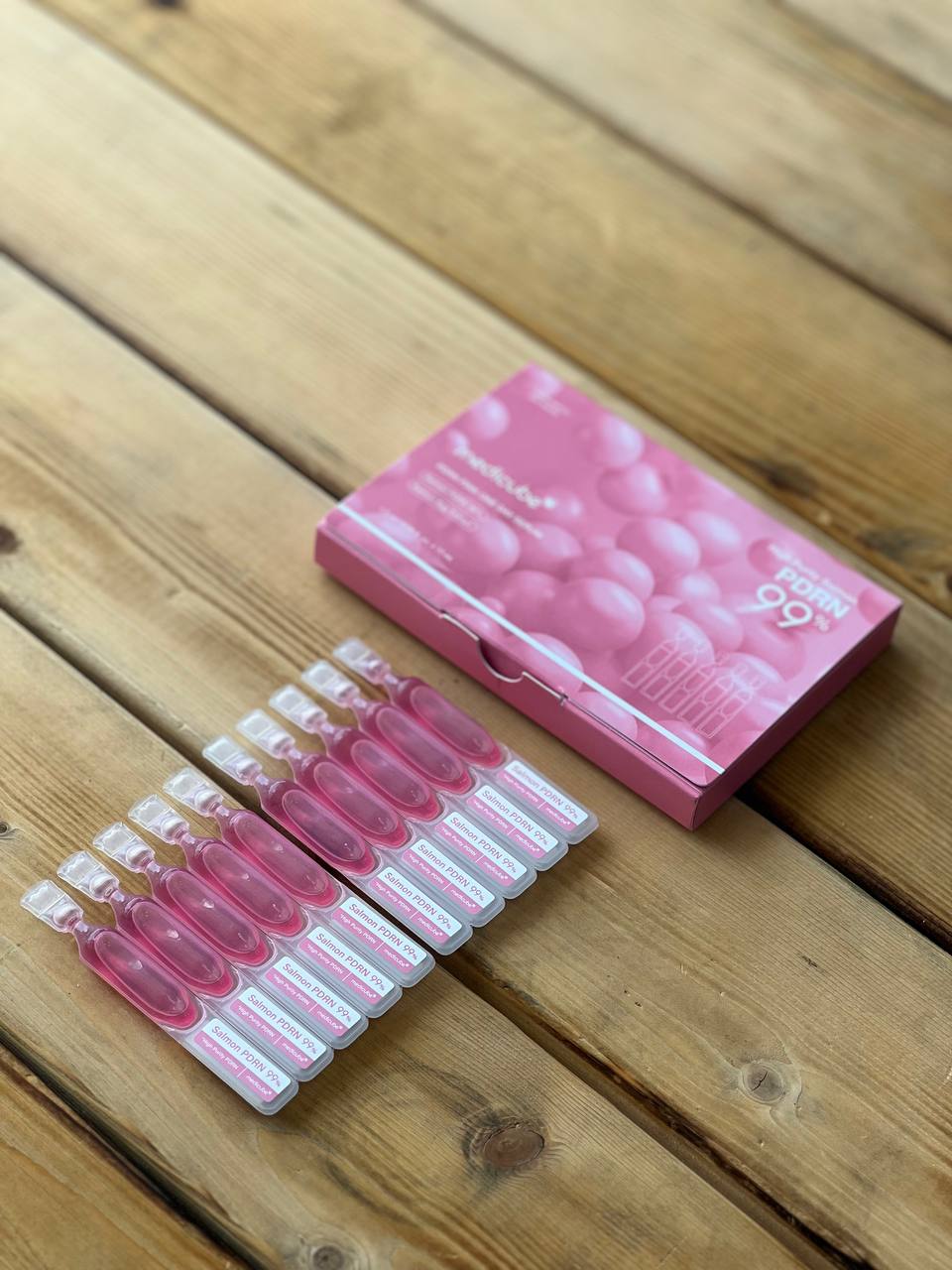 | مناسب | 99% Salmon DNA PDRN Intensive Ampoule, Collagen, Glutathione, Hyaluronic Acid – Improves skin radiance |
